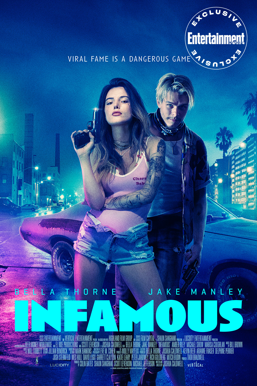 “Com o ‘Infamous’, exploramos as barreiras que as pessoas irão quebrar para alcançar relevância no mundo selvagem das mídias sociais. Qual pessoa melhor para isso do que Bella Thorne?” Caldwell diz à EW. “Ela é uma força motriz que ultrapassa fronteiras, on-line e off, e seu desempenho eleva esse filme a um passeio emocionante por adrenalina”.