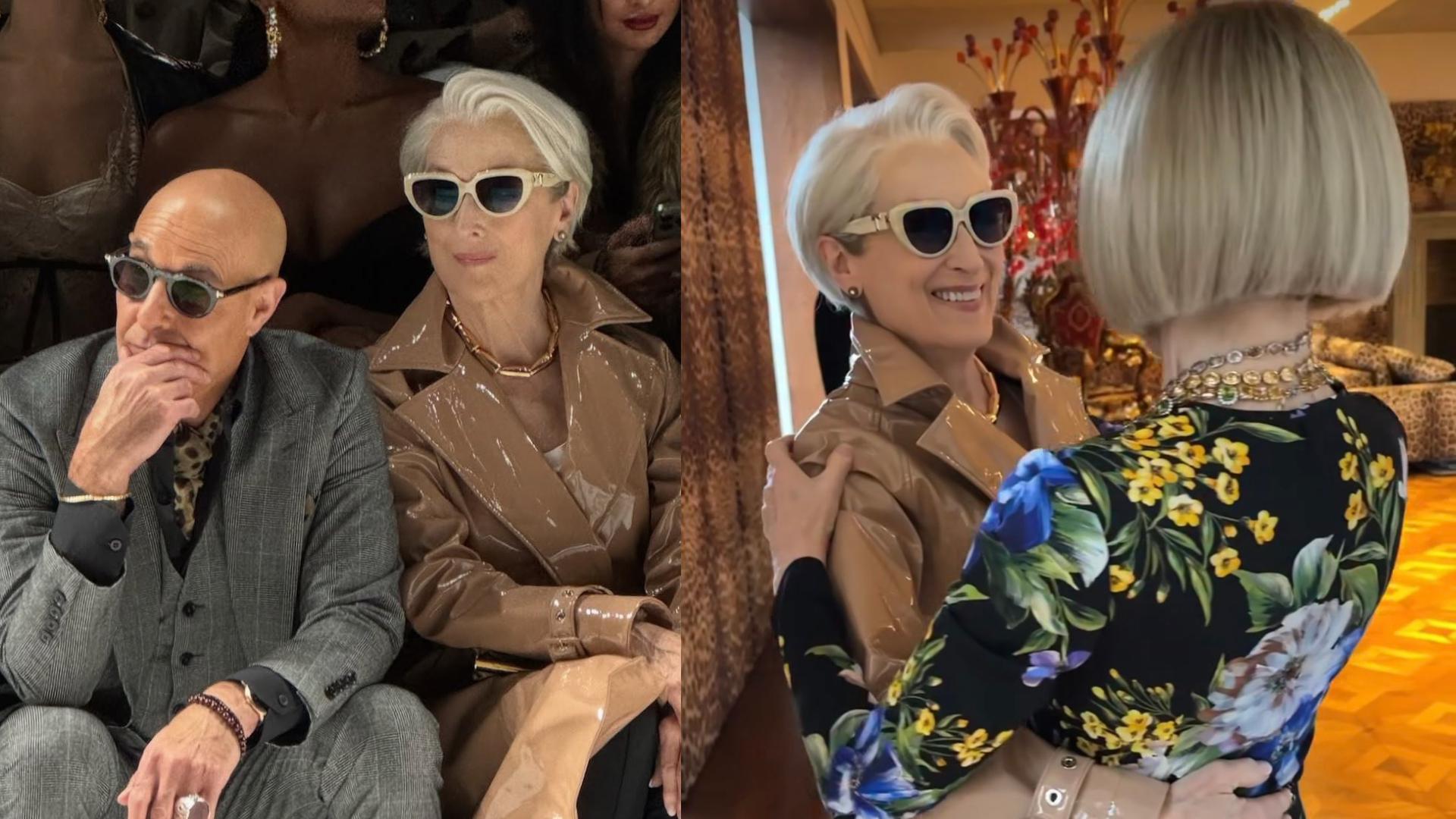 Meryl Streep surge como Miranda Priestly em desfile da Dolce & Gabbana e protagoniza encontro com Anna Wintour